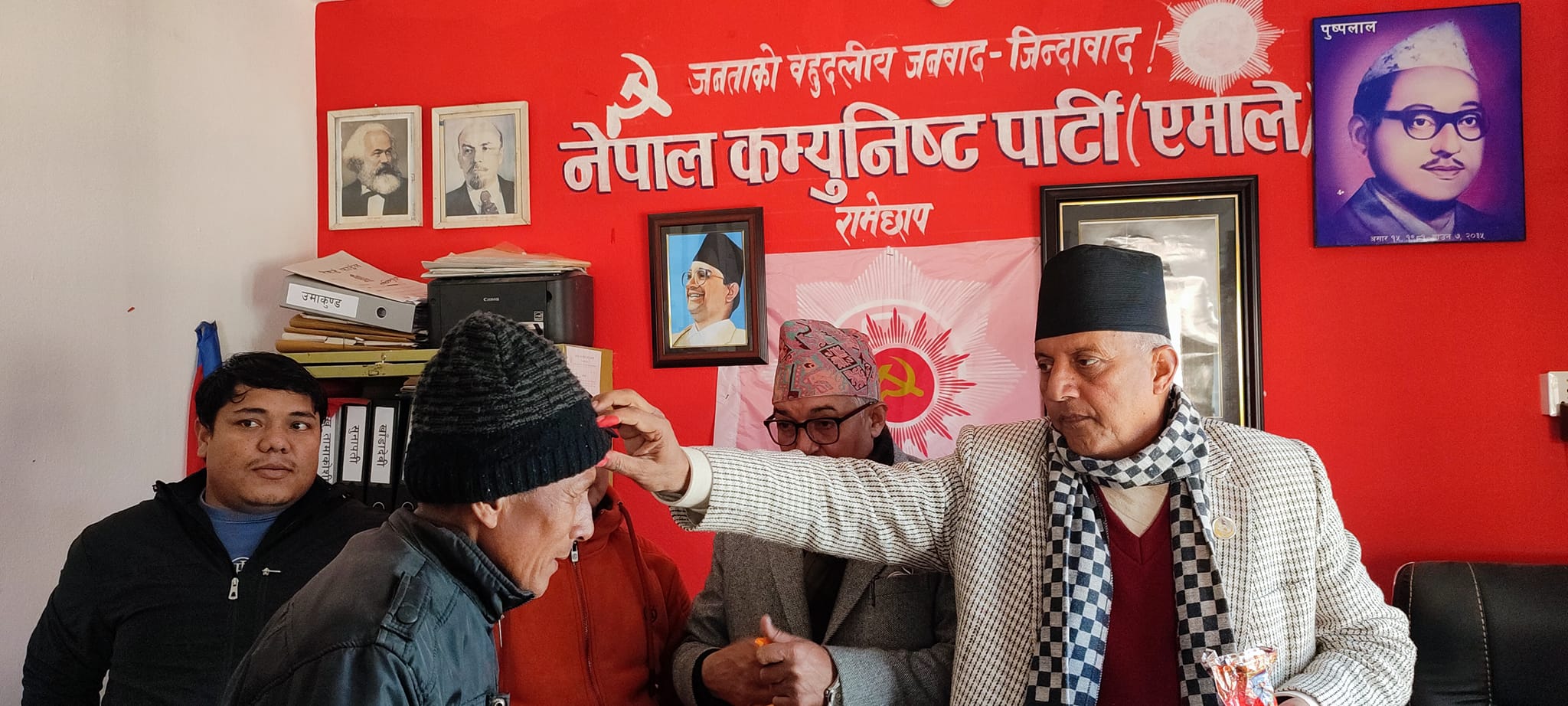 कांग्रेस परित्याग गरेका दुवै जनालाई नेकपा एमाले रामेछापका इन्चार्ज कैलाश ढुंगेल, जिल्ला अध्यक्ष शान्ति पौडेल एमालेका उपाध्यक्ष एवं खाँडादेवी गाउँपालिकाका अध्यक्ष प्रेम बहादुर तामाङले संयुक्त रुपमा पार्टी प्रवेश गराएका हुन् । पार्टी प्रवेश कार्यक्रमलाई सम्बोधन गर्दै इन्चार्ज ढुंगेलले देशको विकास गर्ने एक मात्र सच्चा पार्टी एमाले नै रहेको बताए ।
