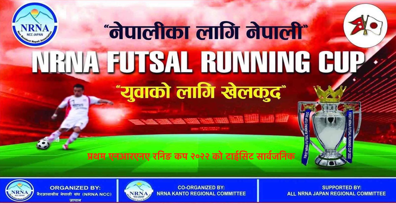 जापान । गैरआवसीय नेपाली संघ (एनआरएनए) जापानको आयोजनामा हुने प्रथम एनआरएनए रनिङ कप २०२२ को टाईसिट सार्वजनिक भएको छ ।
