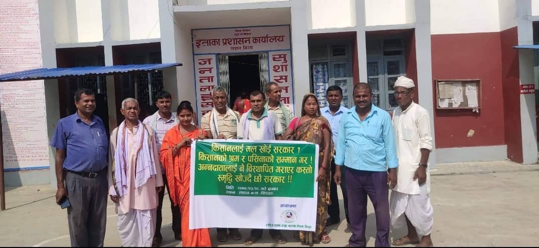 महेश सिंह, लहान : सिरहाको लहान नगरपालिका ग्रामीण चौक स्थित रहेको ईलाका प्रशासन कार्यालय प्रमुखलाई राष्ट्रिय कृषक समुह महासंघ नेपालले किसानहरुलाई समयमा सहुलियत र सहज रुपमा मल ,खाद बिउ,समयमै उपलब्ध गराउनको लागी ज्ञापन बुझाएका छन्।