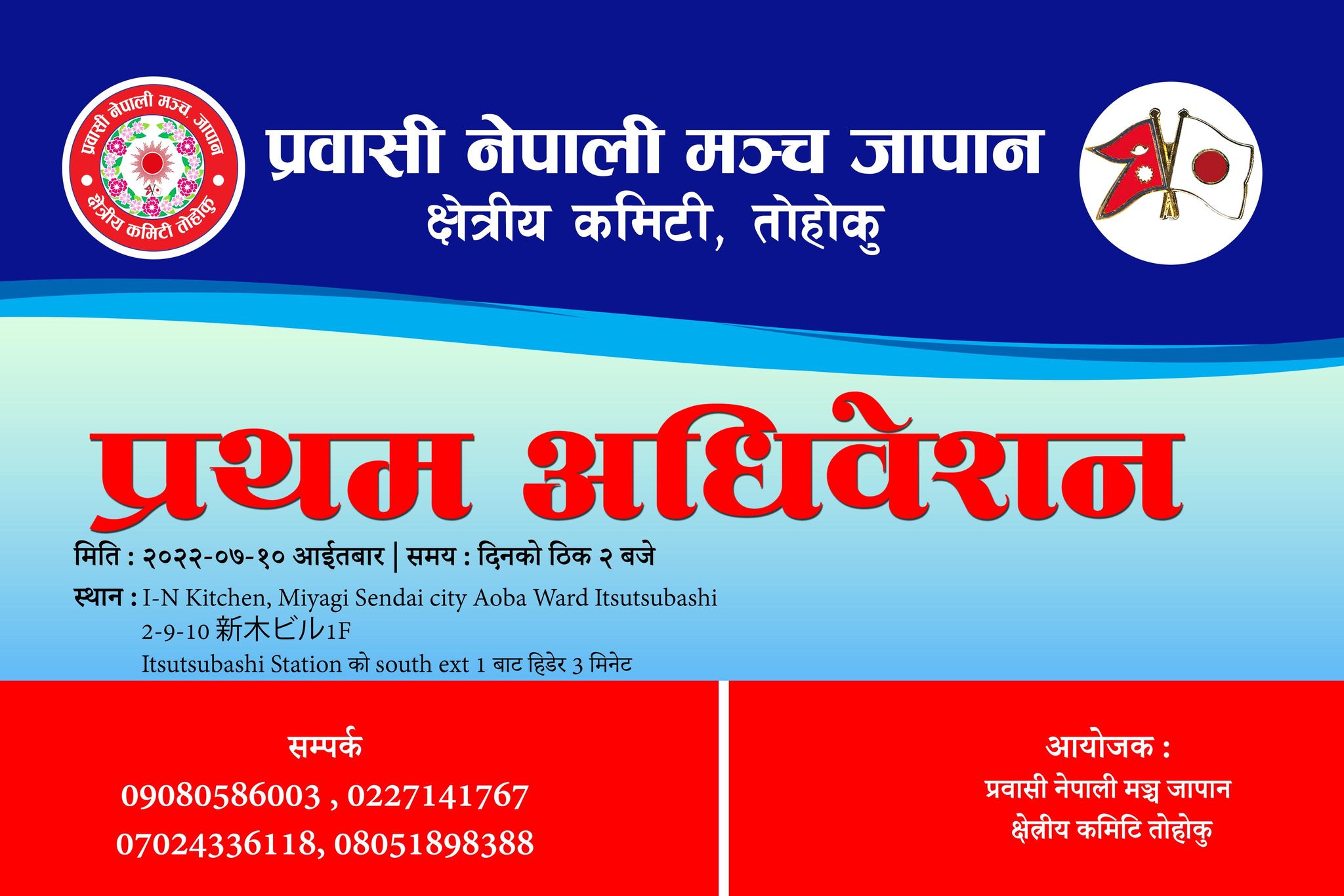प्रवासी नेपाली मञ्च जापानका प्रचार बिभाग प्रमुख प्रकाश ढकालका अनुसार जापानको हरेक क्षेत्रमा संगठन बिस्तार र अधिवेशन गर्ने शिलशिलामा तोहोकु क्षेत्रको प्रथम अधिवेशन जुलाई १० मा गर्ने बताउनु भयो ।