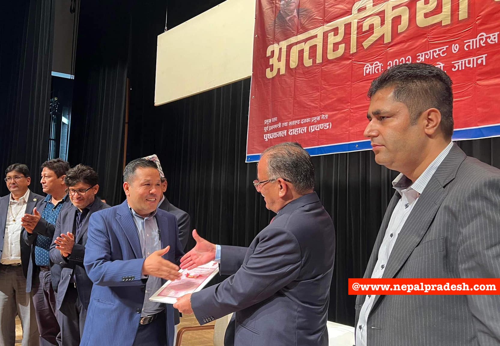 नेपाली जनप्रगतिशिल मञ्च जापानको आयोजना भएको अन्तरक्रिया पूर्वप्रधानमन्त्री प्रचण्डको प्रमुख आतिथ्यतामा भएको कार्यक्रम मञ्चका अध्यक्ष भवानी पन्तको सभापतित्वमा महासचिव बाबुराम पौडेलले संचालन भएको थियो ।