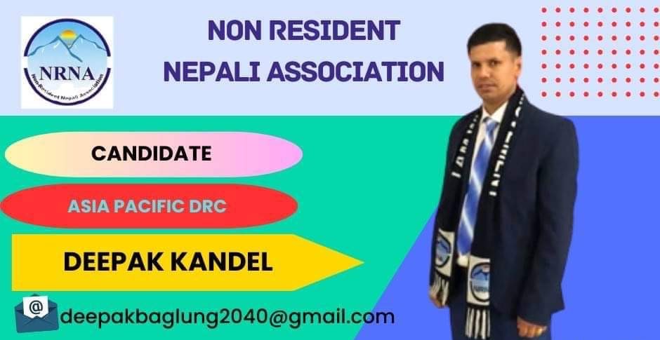 जापान : गैरआवासीय नेपाली संघ एनआरएनएमा एसिया प्यासिफिकको उप संयोजक(डिआरसी) मा दिपक कंडेलले उम्मेदवारी घोषणा गरेका छन ।’