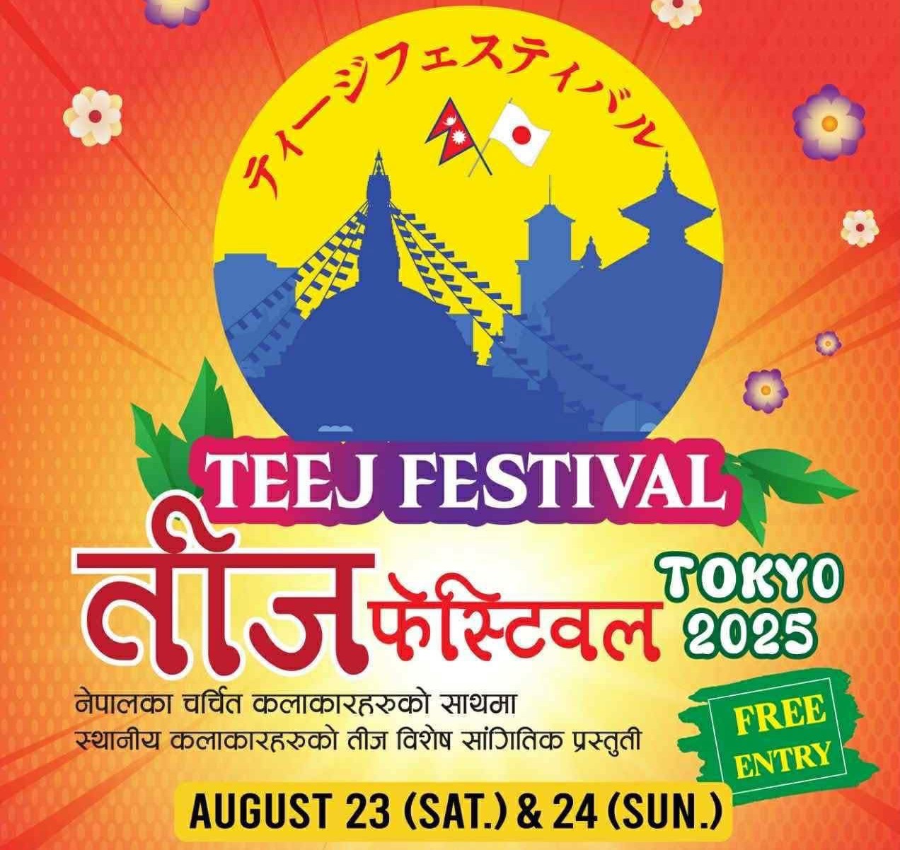 टोकियो । हरितालिका तीजको अवसरमा टोकियोको मुटु शिनओकुबोमा दुई दिवसीय तीज फेस्टिवल हुने भएको छ । आगामी अगष्टको २३ तारिख शनिबार र २४ तारिख आइतबार दुई दिन उक्त तीज फेस्टिवल हुने भएएको हो । यो वर्षको तीज अगष्ट २६ मा परेको छ भने २५ तारिख दरखाने रहेको छ ।