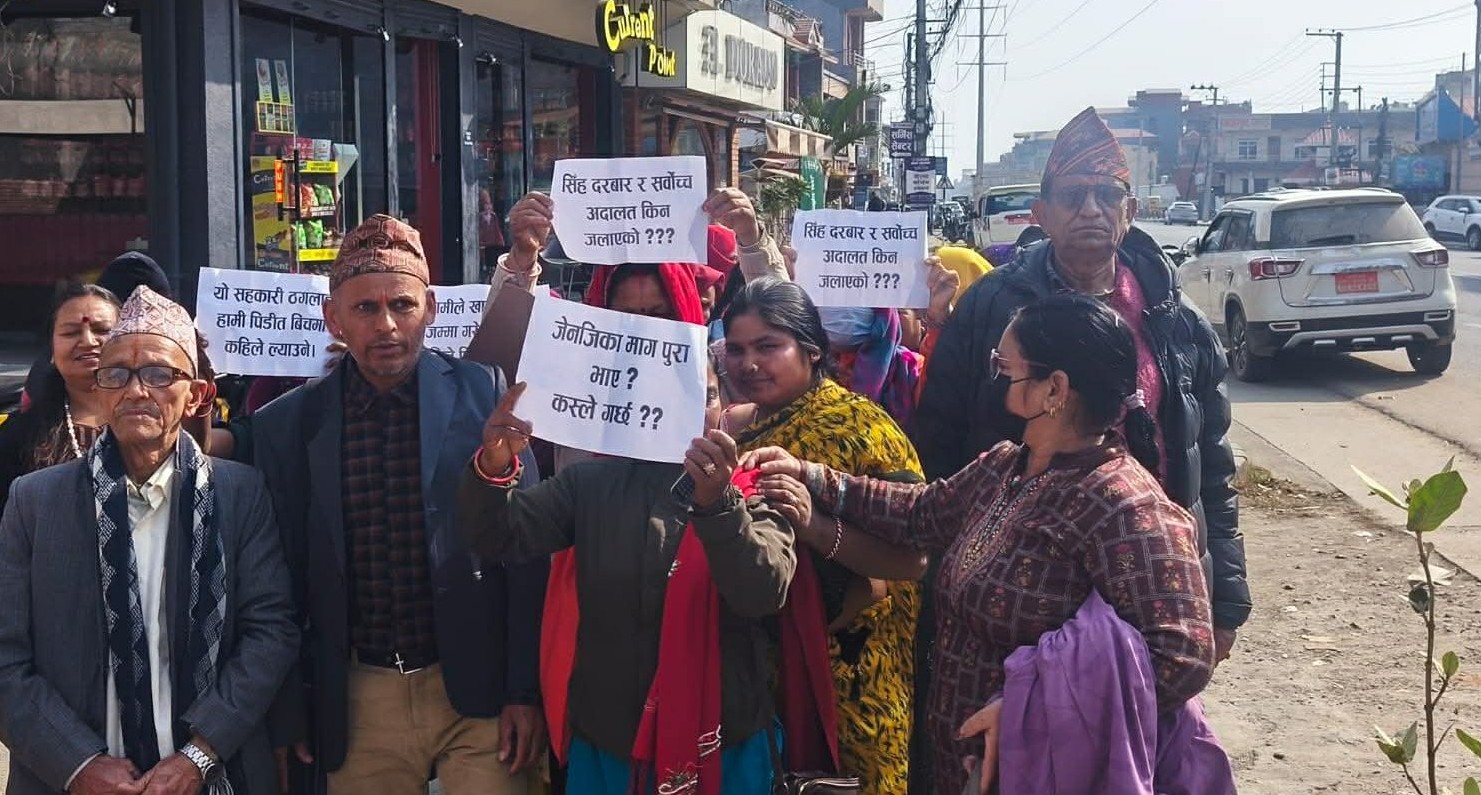 हातमा तिम्रो नेता खोई ? लिएर आऊ, जेनजीका माग कसले पूरा गर्छ ? सिंहदरबार किन जलाएको ? लगायतका नारा लेखिएका प्लेकार्ड बोकेर नाराबाजी गरेका पीडित उभिएको देखेपछि घरदैलो अभियानमा रहेका सुलभ नजिकैको एल डोराडो होटलभित्र छिरेर बसेको पीडितहरूले दाबी गरेका छन् ।