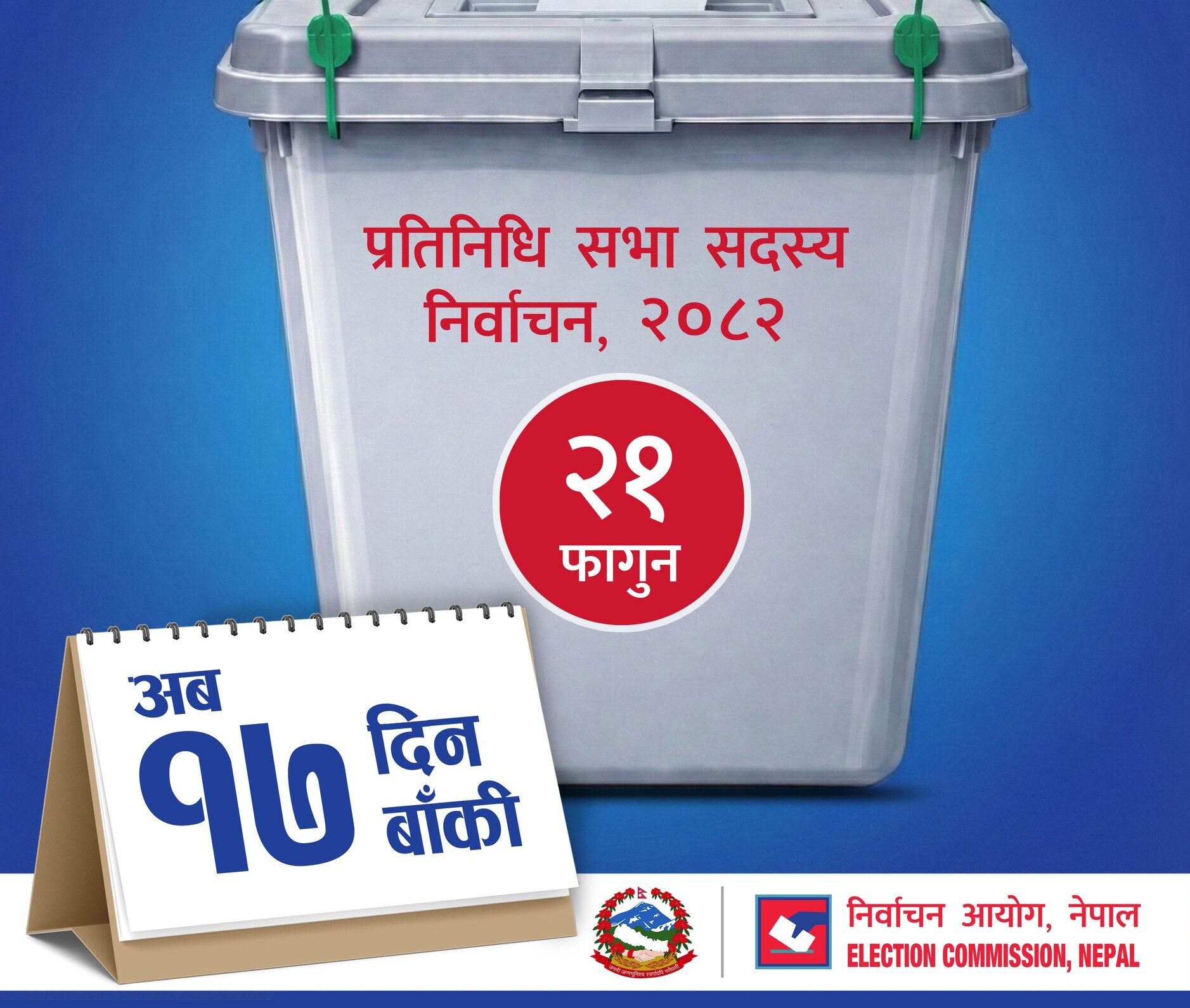 सोही व्यवस्थाअनुसार, आज फागुन ४ गतेदेखि फागुन १८ गते राति १२ बजेसम्म राजनीतिक दल तथा उम्मेदवारहरूले निर्वाचन प्रचार–प्रसार गर्न सक्ने छन् ।