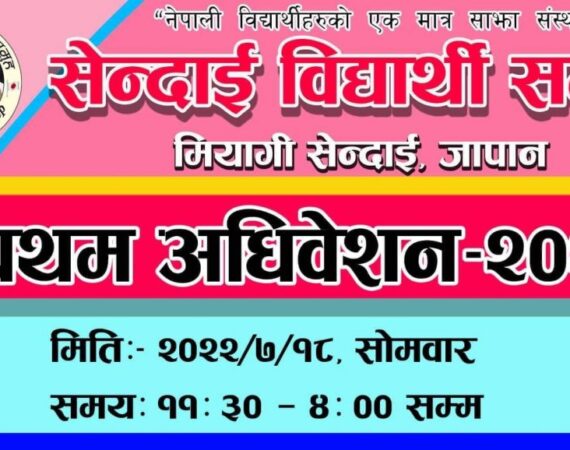 सेन्दाई विद्यार्थी समुहको प्रथम अधिवेशन जुलाई १८ तारिख हुने